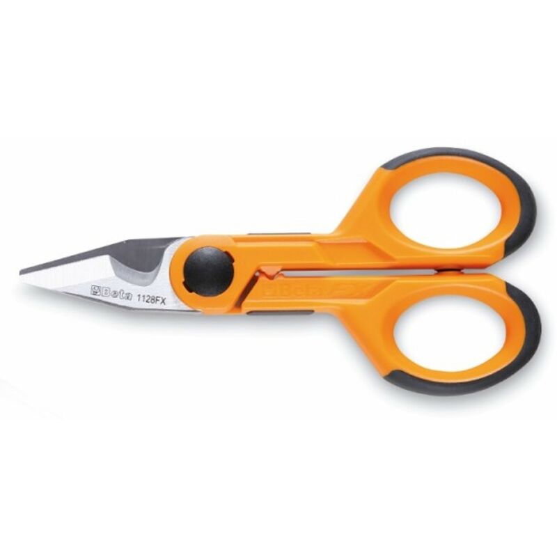 Forbici per elettricisti lame dritte in acciaio inossidabile con microdentatura, gola tranciacavo e crimpatore per terminali a tubetto. Con funzione tranciacavo e crimpatura • Custodia agganciabile alla cintura • Impugnatura bimateriale • Perno anti-allentamento Codice prodotto Art. L mm L1 mm A mm B mm mm² g 011280090 1128FX 145 52 22 17 50 80