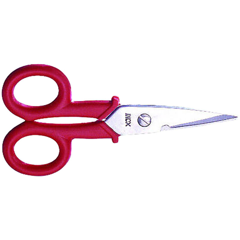 Forbici per elettricista mm 145 lame diritte Manici in ABS di colore rosso. Lame in acciaio inox SS304 - 380-420 HV micro dentate che trattengono il cavo da tagliare. Spessore lame 2,5 mm. Trattamento superficiale satinato. mm 145 lame diritte Categoria dell'articolo: Utensili a mano ed articoli tecnici - Cutter,forbici,cesoie e lame