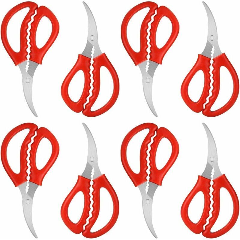 Materiale: forbici per frutti di mare da cucina in acciaio inossidabile, resistenti e affilate. Contenuto: forbici per frutti di mare da 8 pezzi Lunghezza: circa 15,8 cm, larghezza: circa 7,4 cm. rosso.Funzione: forbici per granchi, adatte per rompere e affettare granchi, gamberi, aragoste e gamberi, nonché verdure e frutta.Ottima vestibilità: il design unico della maniglia è facile da impugnare, perfetto per la casa e i ristoranti di pesce. servizio: forniamo anche un servizio post-vendita per i clienti, se avete domande, non esitate a contattarci.
