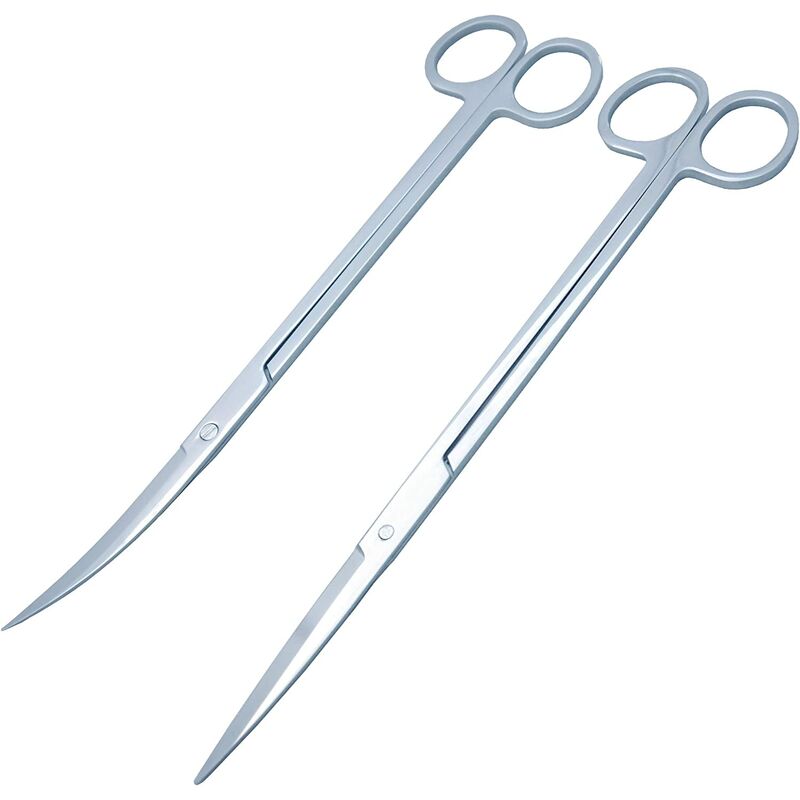 Set completo di forbici | Le forbici curve facilitano il taglio dell'erba e di altre piante a bassa crescita in luoghi difficili da raggiungere. Le forbici dritte consentono di tagliare facilmente piante alte, come piante a stelo Acciaio inossidabile | Le forbici sono realizzate in acciaio inossidabile di alta qualità per resistere alla corrosione. Forbici per acquari d'acqua dolce e salata Adatto a tutti gli acquariofili | Molto facile da usare, quindi adatto sia per professionisti che per amatori. Può essere utilizzato in qualsiasi acquario, terrario o aquascape Ergonomia | Le forbici sono progettate per essere ergonomiche. Una lunghezza di 25 cm è una buona dimensione per il taglio di piante acquatiche. Le forbici più lunghe sono meno facili da maneggiare con una mano, mentre quelle più piccole sono meno efficienti. Le forbici restano leggere grazie all'acciaio inossidabile 420 PRECISIONE | Con queste forbici puoi tagliare le tue piante acquatiche al millimetro. E il tagliente