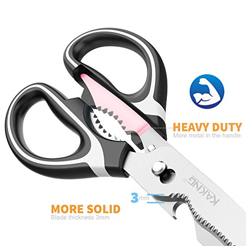Forbici professionali da cucina resistente, Kaiking come Apart multifunzionale forbici, ultra tagliente in acciaio INOX per cucina pollame, carne, pesce, erbe, verdure, BBQ (bianco e nero)