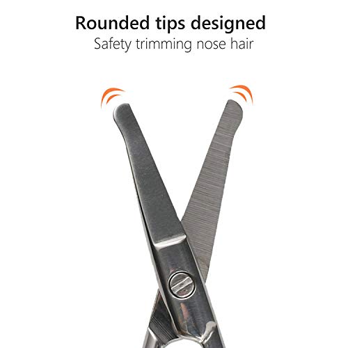Forbici con punta arrotondata di sicurezza per tagliare i peli al naso e alle orecchie. Con le punte rotonde, non devi preoccuparti di accoltellarti.