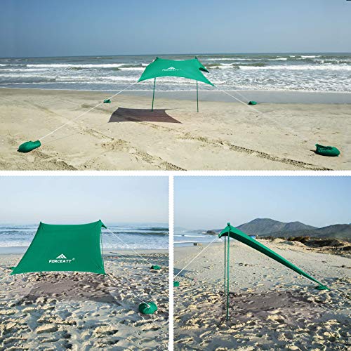 Forceatt Tendalino da Spiaggia, Tenda da Spiaggia Pop-up con Protezione UV UPF50 e 2 Pezzi Pali in Alluminio, Riparo da Esterno per Tempo in Spiaggia, Campeggio o Picnic in Famiglia (2.1 Mx2.1 M)