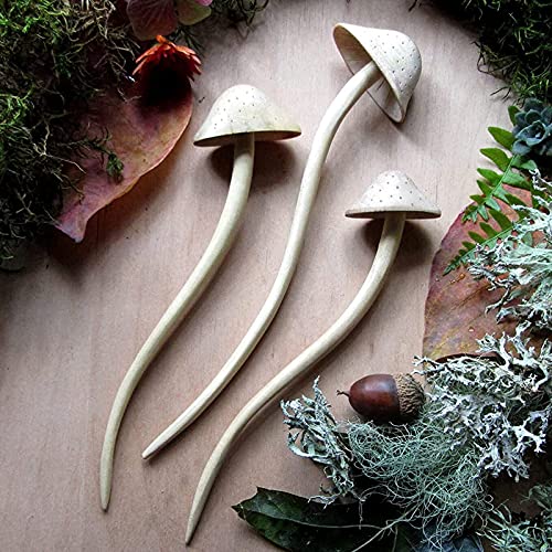 [Mushroom Fairy Hair Stick] - Intagliato a mano in legno. È come un giardino di funghi fata fantasia sulla tua testa! Affascinante stile foresta da fiaba per le streghe Woodland, le ragazze Mori, il cosplay incantato e gli amanti della natura. Piacevolmente leggero.