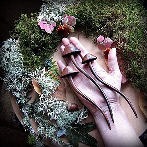 Forcella per capelli in legno, fatta a mano, per capelli lunghi, 2 pezzi, in legno di fata, funghi, funghi, funghi e funghi, forcine per capelli vintage