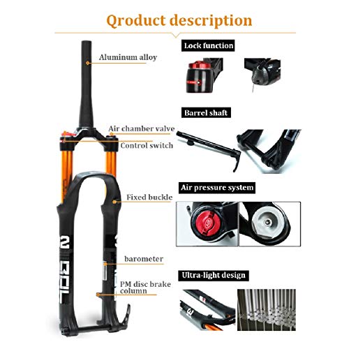 VPPV Forcella MTB 27,5 29 Pollici Telecomandata, Cannotto Conico 1-1/2" Mountain Bike Forcella di Controllo Corsa 120 mm (Colore: Remote Lock, Size: 27.5 inch)