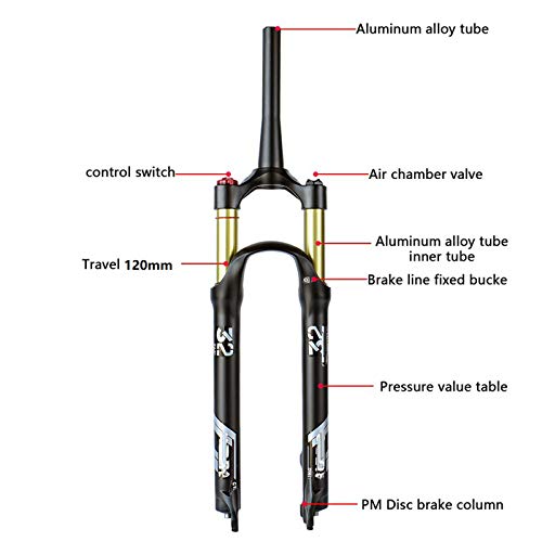Forcelle Ammortizzate per Mountain Bike, Bici da 26/27,5/29 Pollici MTB, Tubo Conico Bici Forcella Anteriore in Lega di Magnesio, Corsa 100 Mm 28,6 Mm,Remote,29inch