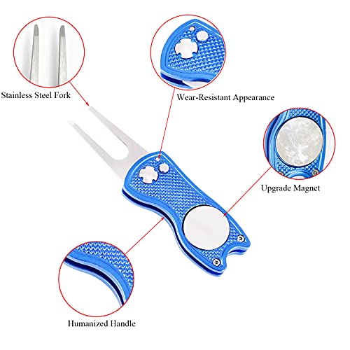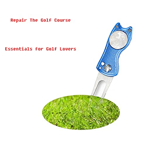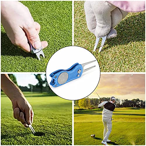 Forcelle Golf Golf Divot Tool Golf Strumento Di Riparazione Marcatore 1 Pezzo Blu Pieghevole In Acciaio Inox Con Pulsante Magnetico Da Golf Sport All'Aperto E Accessorio L'Allenamento Del Golfista