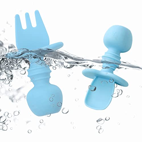 Forchetta e Cucchiaio per Bambini - Cucchiaino svezzamento - Cucchiaio svezzamento antibatterico per il BLW - Cucchiaino silicone neonato - per neonati dai 6 mesi, per 2 fasi dell'alimentazione