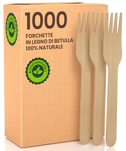 1000 Forchette Ecologiche in Legno di Betulla Monouso 100% Naturali Biodegradabili e Compostabili Posate Usa e Getta