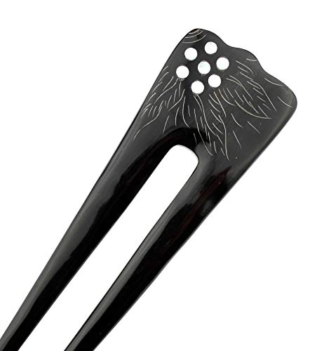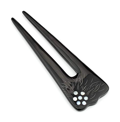 Forcina per capelli in corno di bufalo con incrostazione di madreperla