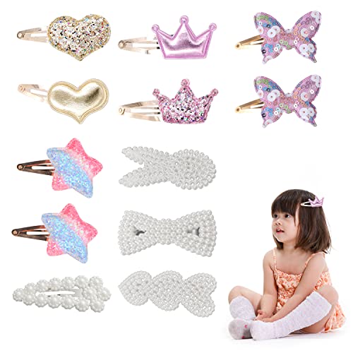 4 paia di forcine per bambini carini e 4 forcine per capelli in perle, forcine per capelli a forma di corona/cuore/stella/farfalla, forcine luminose alla moda