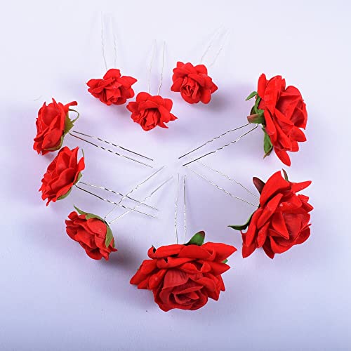 6 forcine per capelli da donna con rosa rossa, a forma di U, per capelli da sposa, forcine per capelli messicani, per donne e ragazze, per matrimoni, feste e balli (S, M, L)