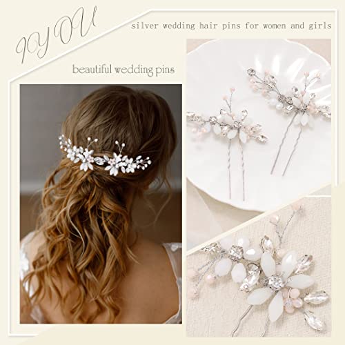 IYOU Forcine per capelli a forma di fiore da sposa con strass argentati accessori per capelli per donne e ragazze (confezione da 2) (argento)