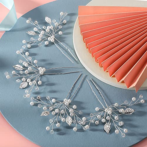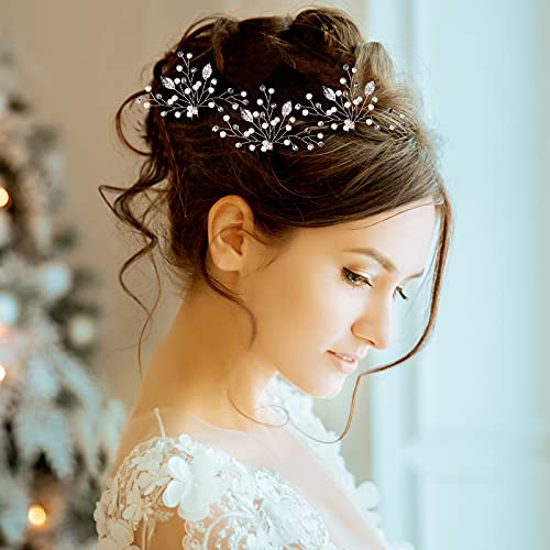 8 Forcine per Capelli con Perle da Sposa Pin per Capelli a Fiori e Foglie da Sposa Pezzi di Capelli da Damigella d'Onore di Strass Accessori di Capelli da Sposa per Donne Ragazze (Argento)
