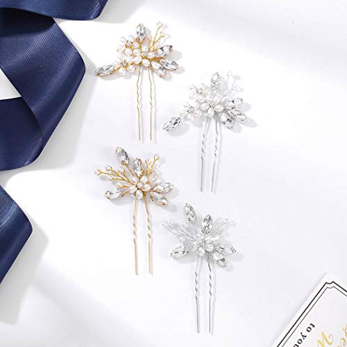 IYOU Forcine per capelli da sposa con cristalli argentati con strass accessori per capelli per donne e ragazze (confezione da 2) (argento)