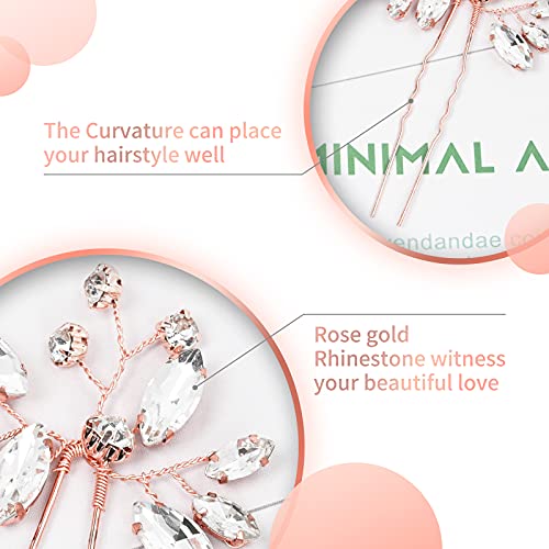 9 forcine per capelli da sposa con cristalli di fiori, da sposa, con strass, in oro rosa, con perle e cristalli, accessori per capelli per donne e ragazze