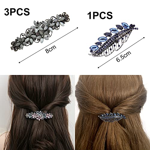[Set di forcine per capelli di cristallo] Riceverai 4 pezzi di forcine per capelli di cristallo, tra cui 3 pezzi di forcine per capelli con cristalli (blu-rosa, nero-blu, grigio) e 1 pezzo di forcine per capelli a foglia (blu scuro), molto squisite e belle, alla moda, eleganti e retrò, quantità sufficiente e stili ricchi, abbastanza per soddisfare le tue esigenze