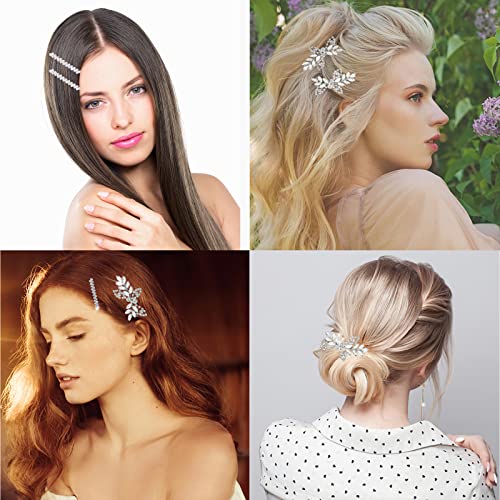 Forcine per Capelli con Strass, 4 Pezzi Fermagli per Capelli Sposa D'argento Clip per Capelli da Sposa con Foglia di Cristallo Punti Luce Capelli Sposa