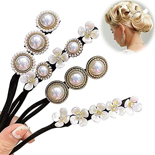 Forcine Fiore Perla Antiscivolo 4 Pezzi Twist Bun Maker Magic Hair Bun Maker Creatore Chignon Capelli Capelli Creatore Panino Magici Chignon per L'acconciatura Fai-da-te Con Acconciatura Alla Francese