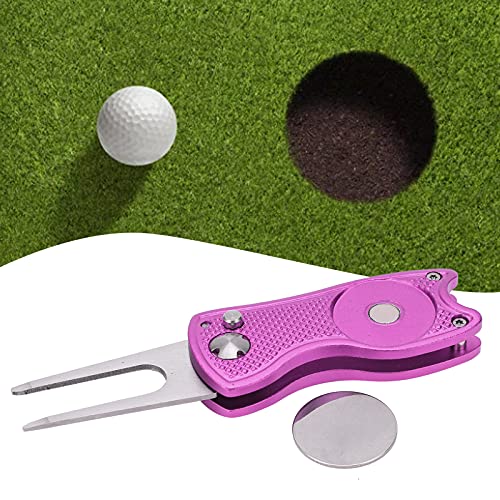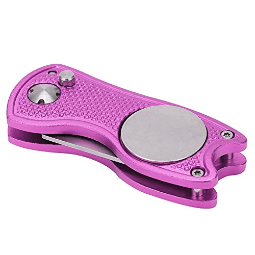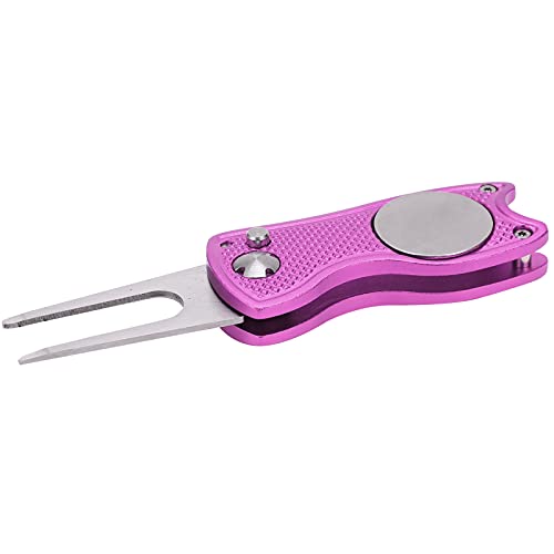 Forcone da Golf Pieghevole, Forcella Automatica da Golf a Molla Verde, Impugnatura in Acciaio Inossidabile, Manico in Alluminio, Strumento di Riparazione per Divot da Golf con Magnete(Rosa)