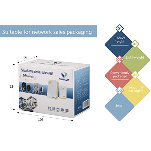 Forecum6 Impermeabile Wireless Intelligen campanello Smart Home Doorbell Receiver + Doorbell Button Transmitter (Remote Control 100M Gamma, 36 Optional Music) AH027