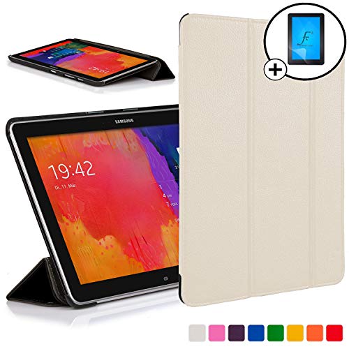 FOREFRONT CASES - Custodia Pieghevole in Pelle con Funzione di accensione e spegnimento Automatico, per Samsung Galaxy Tab PRO da 10,1", Colore: Nero Bianco Bianco Galaxy Tab 10.1 PRO
