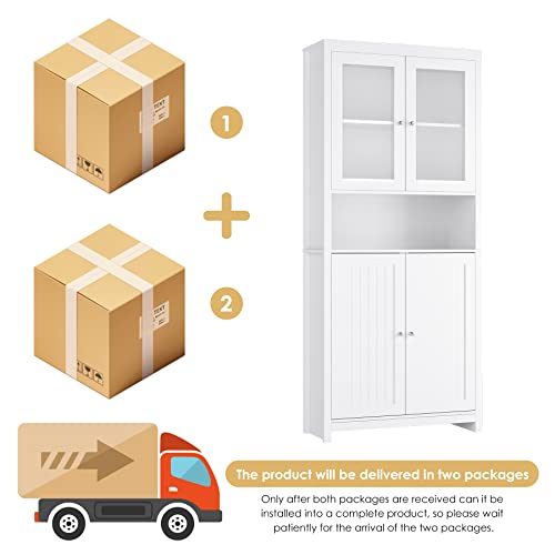 FOREHILL 190cm Credenza Cucina Salvaspazio,Mobile Buffet Dispensa Cucina,Mobiletto con Struttura in Legno,Vani Aperti e Armadietti, Credenza Alta a 4 Ante per Soggiorno, Camera, Ufficio(Bianco)
