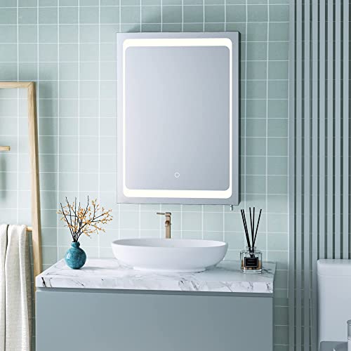 FOREHILL Armadietto a Specchio da Bagno,Mobile bagno con Specchio da Parete con Specchio e Ripiani,Specchio Bagno Contenitore Salvaspazio,Mobiletto a Parete con interruttore a sensore tattile Bianco