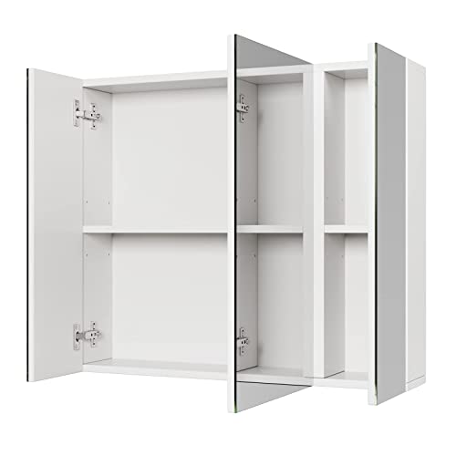 FOREHILL Armadietto a Specchio per Bagno,Specchiera Bagno con Bontenitore,Mobiletto con Specchio e 3 Ante e 2 Ripiani Regolabili,Mobiletto da Bagno con Ante a Specchio 70x15x60cm Bianco