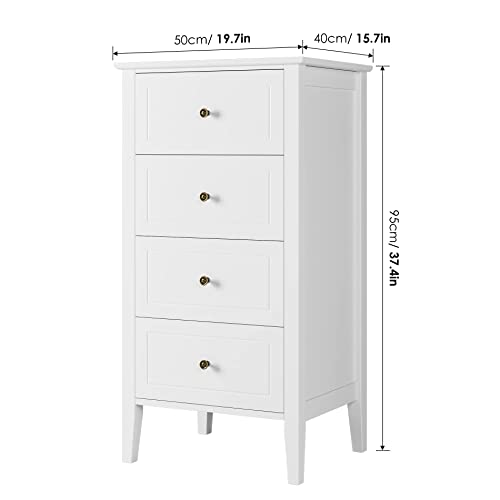 FOREHILL Cassettiera Camera da Letto con 4 Cassetti, Comodino Bianca in Legno, Mobiletto Autoportante per Soggiorno, Corridoio, Cucina 50x40x95 cm