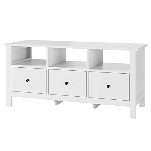 FOREHILL Mobile TV con 3 Cassetti,Mobiletto Basso per TV in MDF Bianco,Tavolino Mobile Porta TV con 3 Scomparti Aperti,Tavolo TV Moderno adatto a Soggiorno Ufficio 108x40x50cm