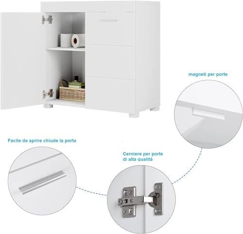 【Adatto a una varietà di scene】 -Semplice e pulito, questo mobiletto a terra sottolavandino è perfetto per la decorazione del bagno. Lo stato ideale è posizionarlo in bagno, oppure in cucina, balcone o lavanderia.