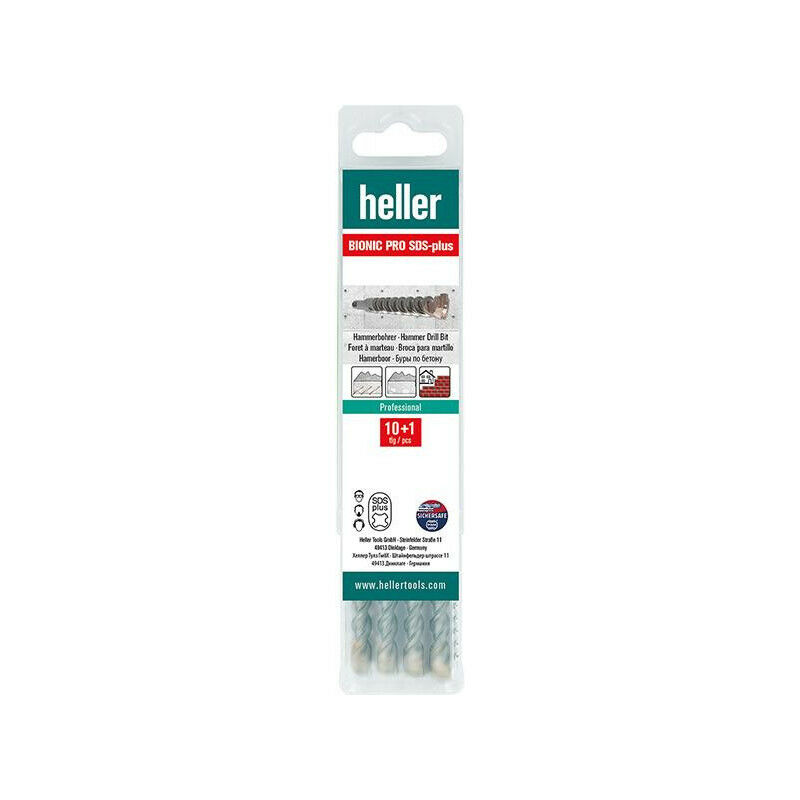 SDS-plus Set di punte per trapano a percussione Bionic Pro Multipack 10+1 - Design di taglio brevettato secondo il principio Bionic - Elica Twinmax-3G per un'ottima rimozione della polvere di perforazione - Scorrimento fluido della punta e ottimo rendimento dell'energia d'impatto - Bassa probabilità di rottura in caso di impatto sull'armatura grazie alla superficie temprata HST - Per calcestruzzo. Muratura. Pietra naturale. Piastrelle. Marmo. Clinker Consegna: in scatola di plastica.