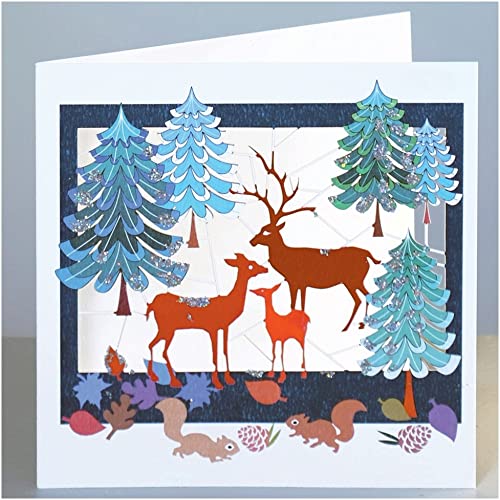 Forever Cards: taglio laser di Natale con glitter - XPM38G - famiglia di cervi in foresta