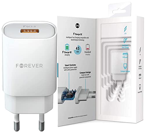 FOREVER - Caricatore USB 18 W con funzione di ricarica rapida - Alimentatore con Quick Charge 3.0 - Caricatore rapido per Samsung Galaxy, iPhone - adatto per telefoni cellulari, smartphone, tablet