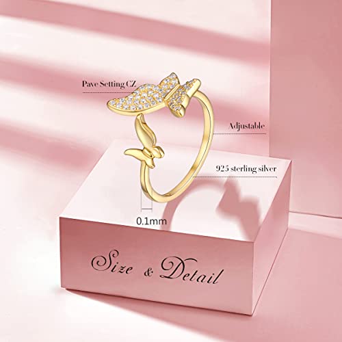 FOREVER QUEEN Anelli da donna Anelli regolabili Anelli in argento 925 Scintillante zircone farfalla anelli per le donne (Anelli d'oro per la donna)