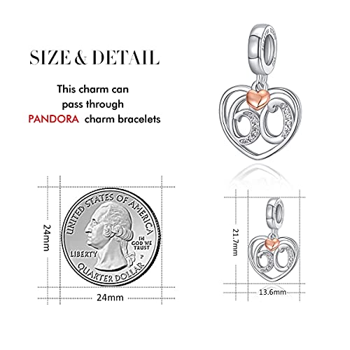 FOREVER QUEEN 60 Fortunato Numero Fortunato Charm Charm 925 sterline d'argento Compleanno Number Numero fascino Bracciali in forma, regalo di compleanno anniversario