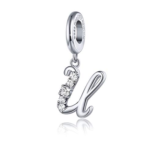FOREVER QUEEN Lettera Charms Bead Ciondolo da Donna Iniziale A-Z Charms Argento Sterling 925 Ciondola Charm Alfabeto Charms per Braccialetto e Collana Europa (Lettera U Perline)