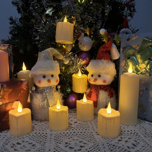 Candele senza fiamma 3D:Effetto realistico della fiamma della cera. La tecnologia di simulazione della fiamma rende le candele sfarfalliere e oscillare come se danzassero con il vento, la goccia di cera di plastica colorata avorio imita l'effetto di bruciare e fondere la cera solida, creando un'atmosfera romantica con un aspetto e una sensazione simulati della goccia di cera, senza bruciare i vimini, Fumo e cera gocciolante disordinata, non devi preoccuparti del rischio di incidenti antincendio.