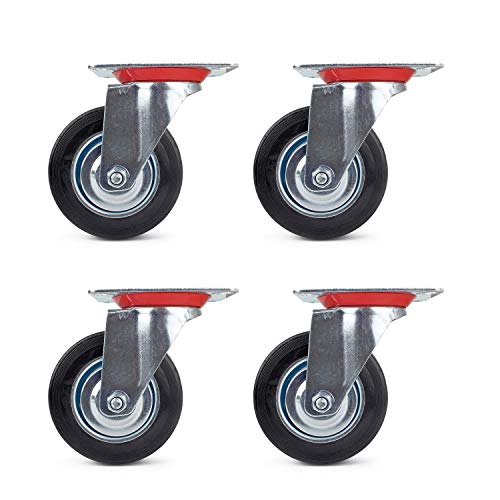 Forever Speed, ruote pivotanti da 125 mm, 4 pezzi, portata 400 kg/set, gomma nera, lamiera d'acciaio zincato, colore: argento e nero