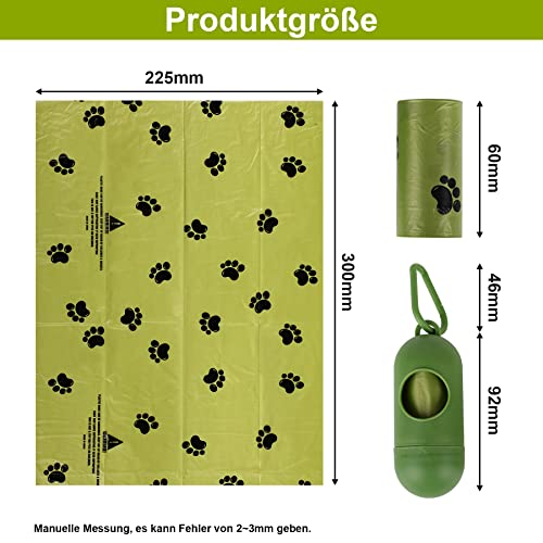 A prova di fuoriuscite e stabile: la dimensione del sacchetto per escrementi per cani è di 22,5 cm x 30 cm, perfetta per cuccioli e cani adulti. Abbastanza grande per legare e assorbire più escrementi di animali domestici. I sacchetti per escrementi del cane sono durevoli e a prova Machen Sie sich keine Sorgen, dass Sie mit bloßen Händen kacken, bevor Sie wieder reißen.