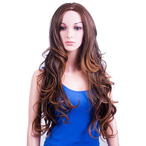 Questa lunga parrucca da donna senza frangia, con capelli castani e riflessi ramati, è tagliata e acconciata alla perfezione con onde naturali e leggere fino all'estremità, con riga centrale.