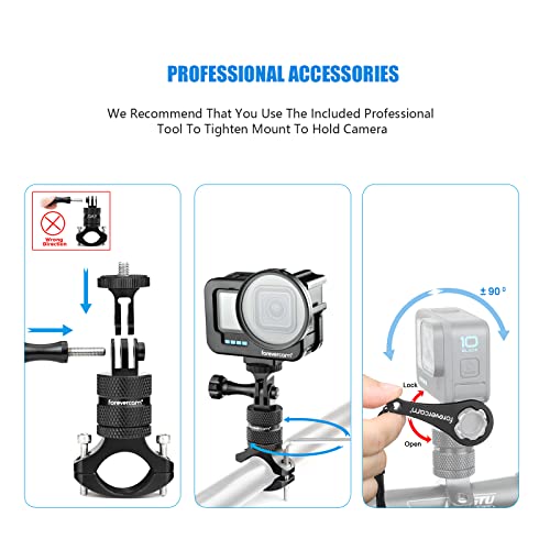 【DUREVOLE E DI ALTA QUALITÀ 】 Il supporto per bicicletta Forevercam è realizzato in lega di alluminio CNC ad alta rigidità, più resistente. Previene la caduta della videocamera durante i movimenti ad alta velocità.