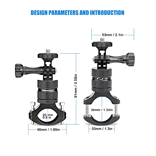 Forevercam Handlebar Action Camera Bike Mount Supporto per Mountain Bike in Alluminio con Rotazione a 360 Gradi, Compatibile con Tutte Le Action Camera GoPro.