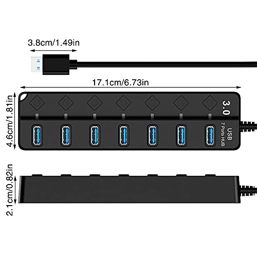 Foreverup Hub USB attivo 3.0 con alimentatore di rete, hub USB 3.0 a 7 porte, distributore di porte USB 3.0, con adattatore di alimentazione, interruttore on/off, per la ricarica il trasferimento dati