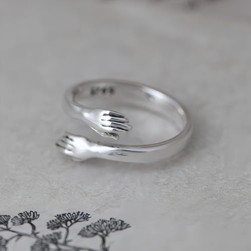 ForFox Anello Abbraccio Mani in Argento Sterling 925 per Uomo Donna Regolabile