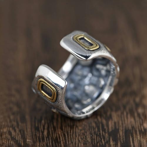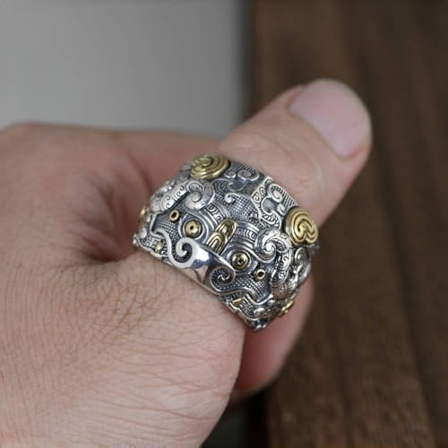 ForFox Anello Aperto TAOTIE Animale Mitico Cinese in Argento Sterling 925 Bicolore per Uomo Regolabile