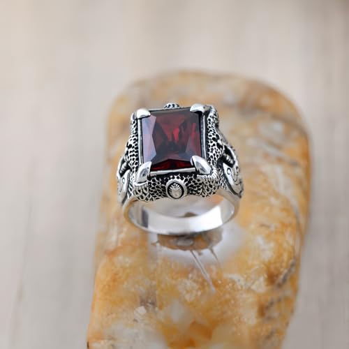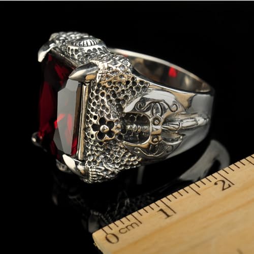 ForFox Anello Artiglio di Drago in Argento Sterling 925 con Pietra Granata Rossa per Uomo Ragazzo Taglia 24