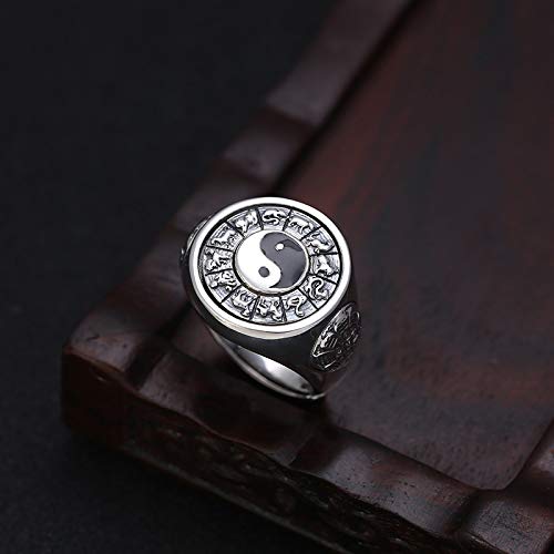 ForFox Anello Girevole Yin Yang Bagua Cinese con 12 zodiaci in Argento Sterling 925 Anello antistress Vintage per Uomo Donna Regolabile